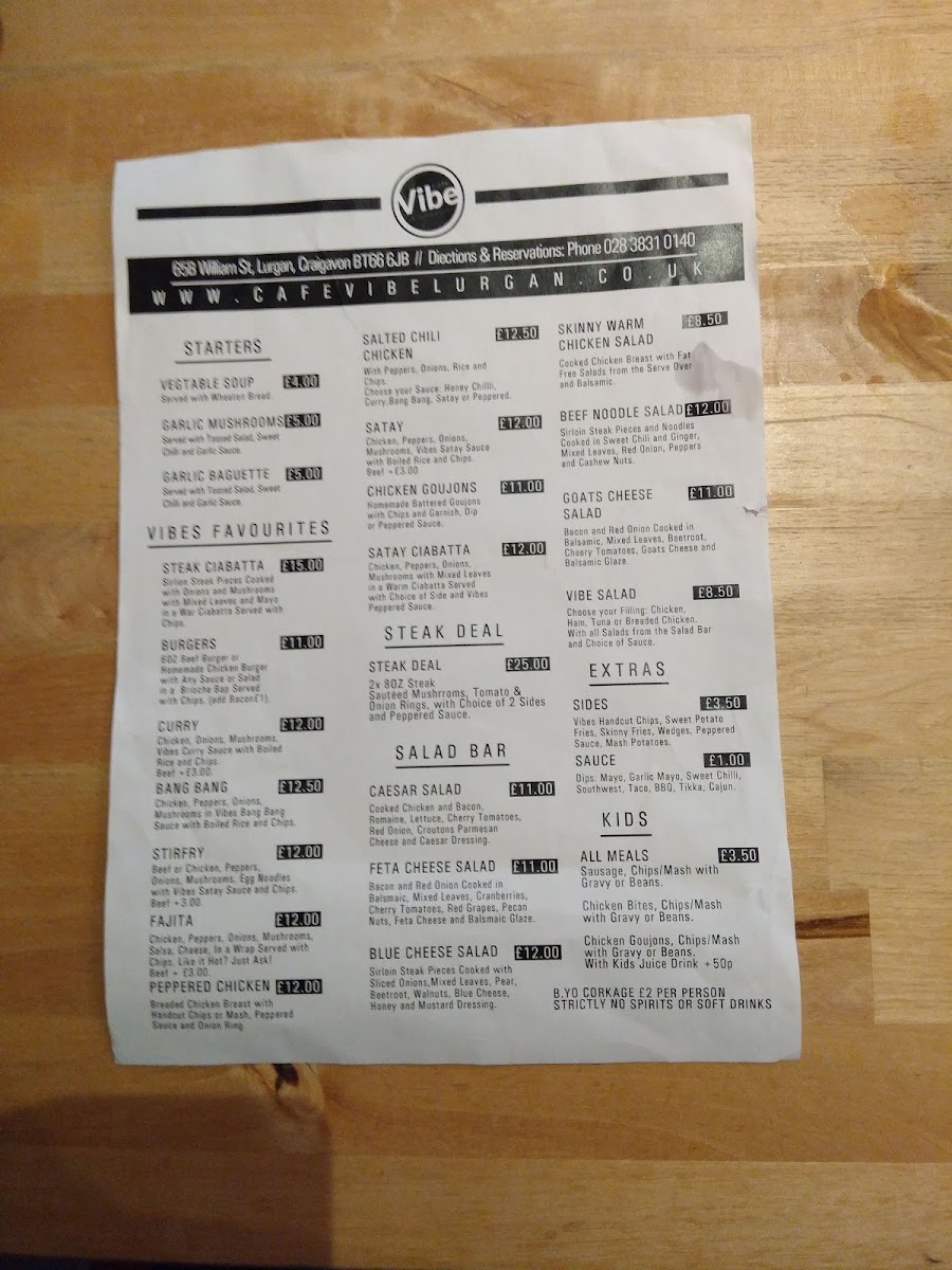 Nestled in the heart of Lurgan, Vibe Restaurant offers a welcoming ambiance and an exciting culinary experience that sets it apart in the local dining scene. The menu is a delightful fusion of contemporary dishes with traditional roots, catering to a diverse palate while maintaining high standards of quality and flavor.